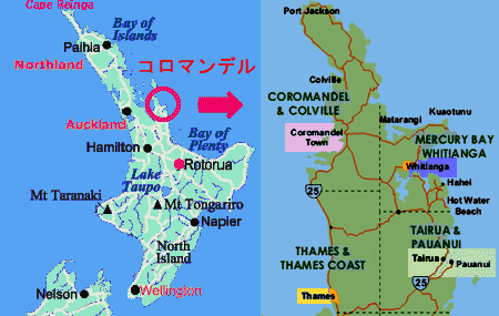 コロマンデル(Coromandel)半島は、オークランドの東側、ハウラキ湾を隔ててオークランドと並ぶように延びる半島です。日本ならば、湾をまたいで橋が渡されるでしょうが、NZではそんな事はありえません!